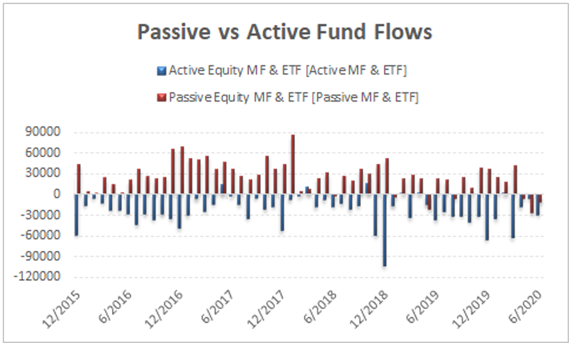 According to Bloomberg Intelligence, around $750 billion flowed out of active equity funds in the last four years, with a lot of that money migrating to passive index funds.
